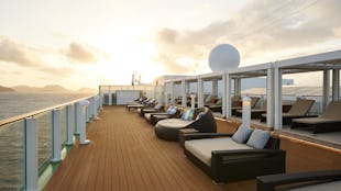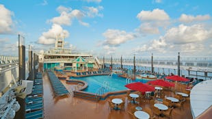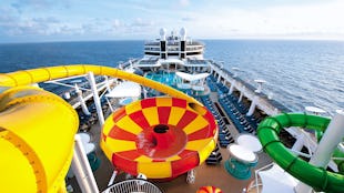 Experience wonderful sea views from a wide range of pools, spa and gym at the top of the ship.